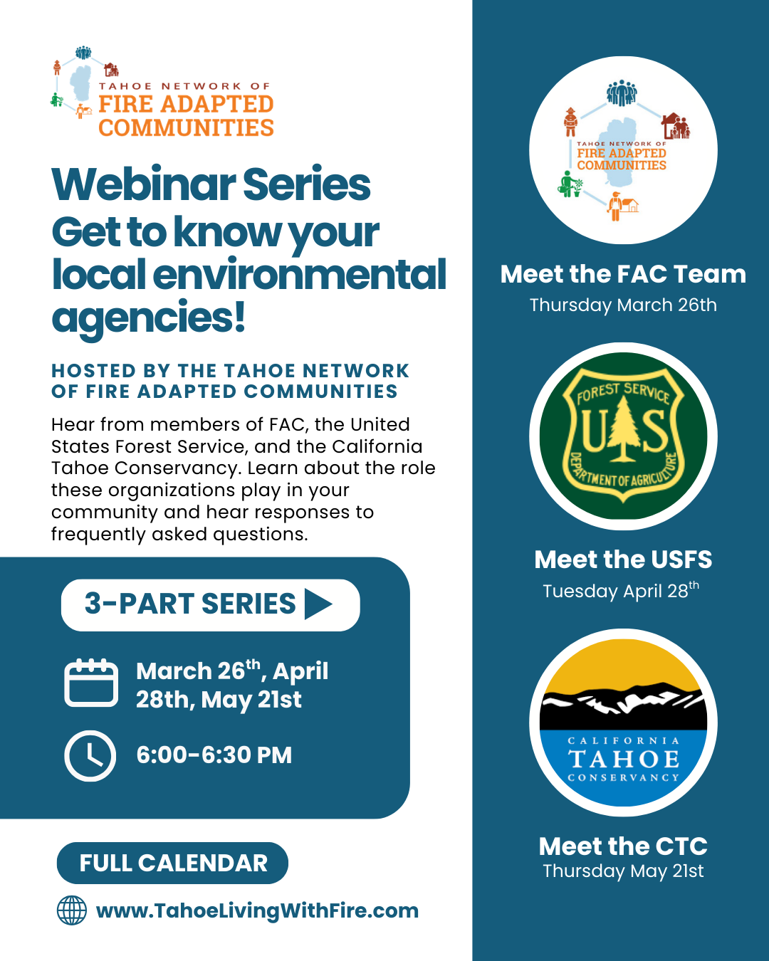 Join TNFAC for a series of webinars to meet the local environmental agencies who help with wildfire prevention and the Fire Adapted Communities program!