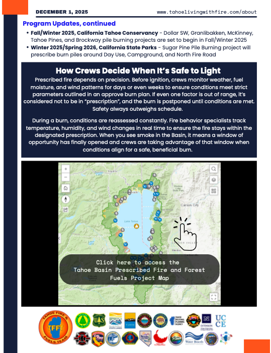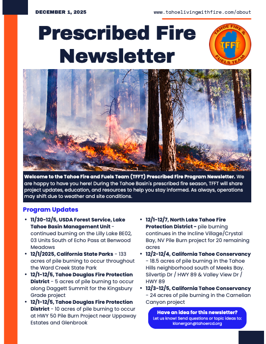 Learn about upcoming prescribed fire projects from the Tahoe Fire & Fuels Team Prescribed Fire Newsletter: