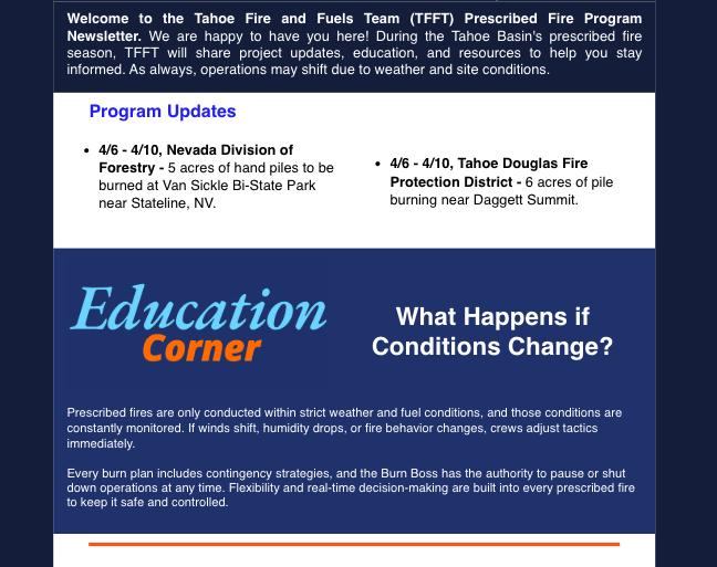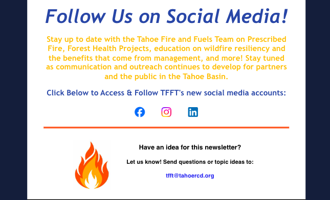 Learn about upcoming prescribed fire projects from the Tahoe Fire & Fuels Team Prescribed Fire Newsletter: